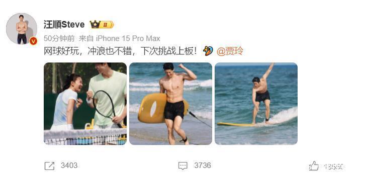 值得一提的是,在贾玲发文不久,汪顺也晒出了和贾玲打网球的照片。