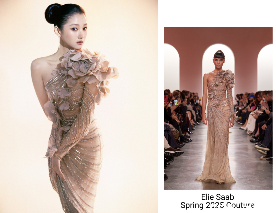 95花关晓彤第八次上身ES高定裙,难得红毯发挥在线,斜肩大花设计中和了头肩比,终于不显壮啦!
